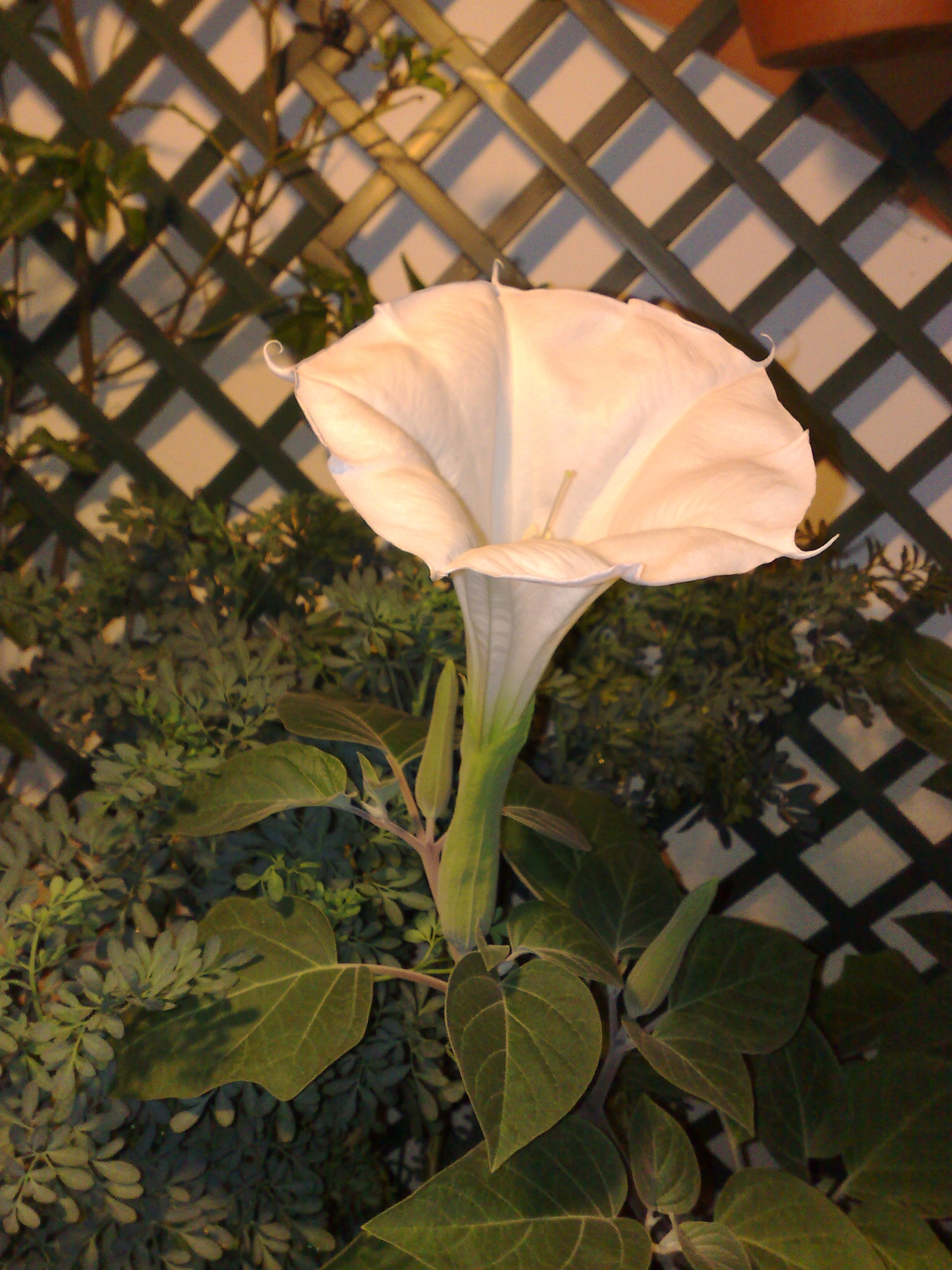 Tal vez os habréis fijado en esas campanillas que crecen en los sitios más inverosímiles y van poblando zonas más y más extensas del campo…Son como la Datura, la flor de la foto. La Datura es 10 veces más grande, pero la flor es bastante parecida.